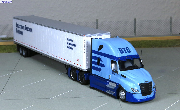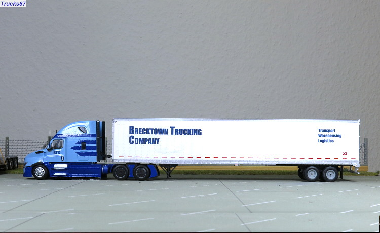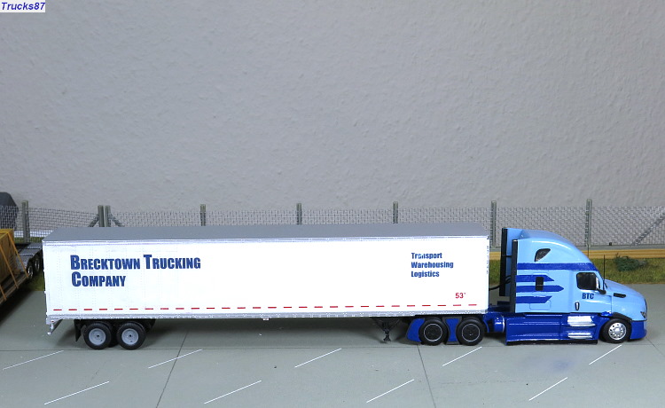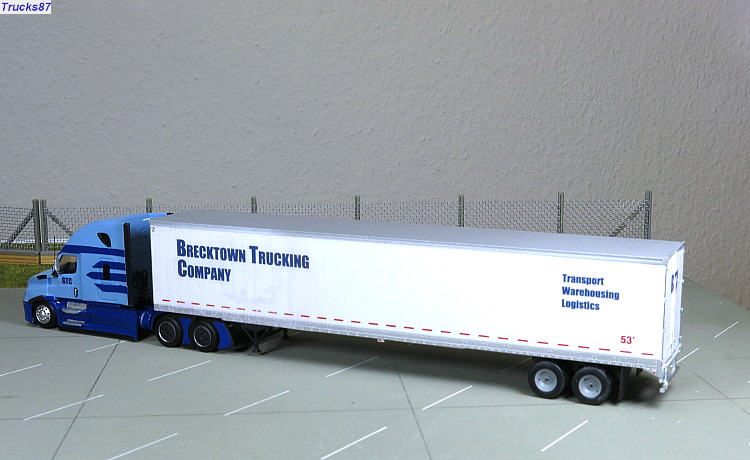 Freightliner Cascadia 5. Generation - Zugmaschine 3D-Druck von DecalPrint; Auflieger von Walthers; Decals ebenfalls von DecalPrint (Die Firma ist fiktiv)